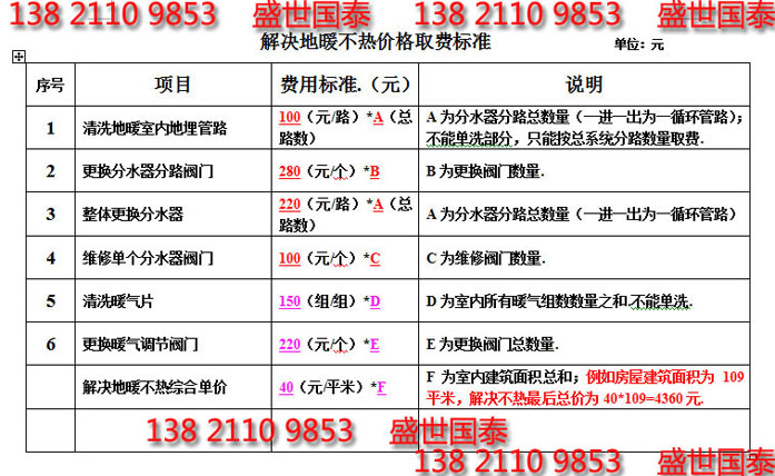 客户理解的清洗=地暖变热,我公司费用地暖清洗是每回路100元,按照分水器总回路数量取费,